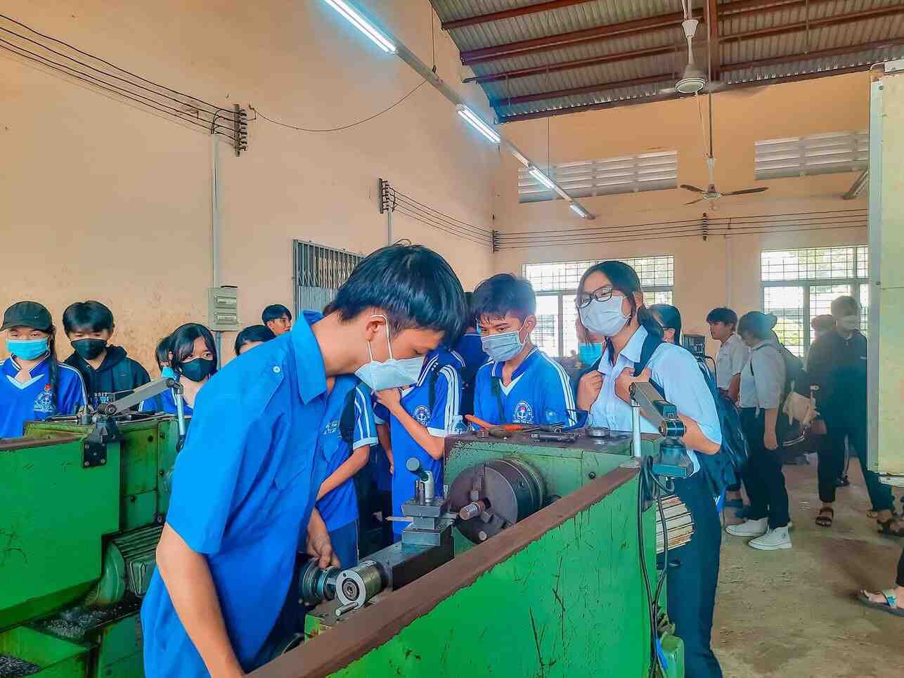 Trong chuyến tham quan, các em học sinh được giới thiệu và trải nghiệm trực tiếp nhiều loại hình ngành nghề đào tạo từ cơ bản đến nâng cao tại Trường Cao đẳng nghề Long An. Ngoài ra, các em còn được xem các video clip giới thiệu chi tiết về các ngành nghề mà trường đang đào tạo. Đặc biệt, đội ngũ giảng viên và chuyên gia đã trực tiếp tư vấn, định hướng nghề nghiệp, giúp các em hiểu rõ hơn về các lựa chọn phù hợp với sở thích, năng lực cá nhân và nhu cầu của thị trường lao động.