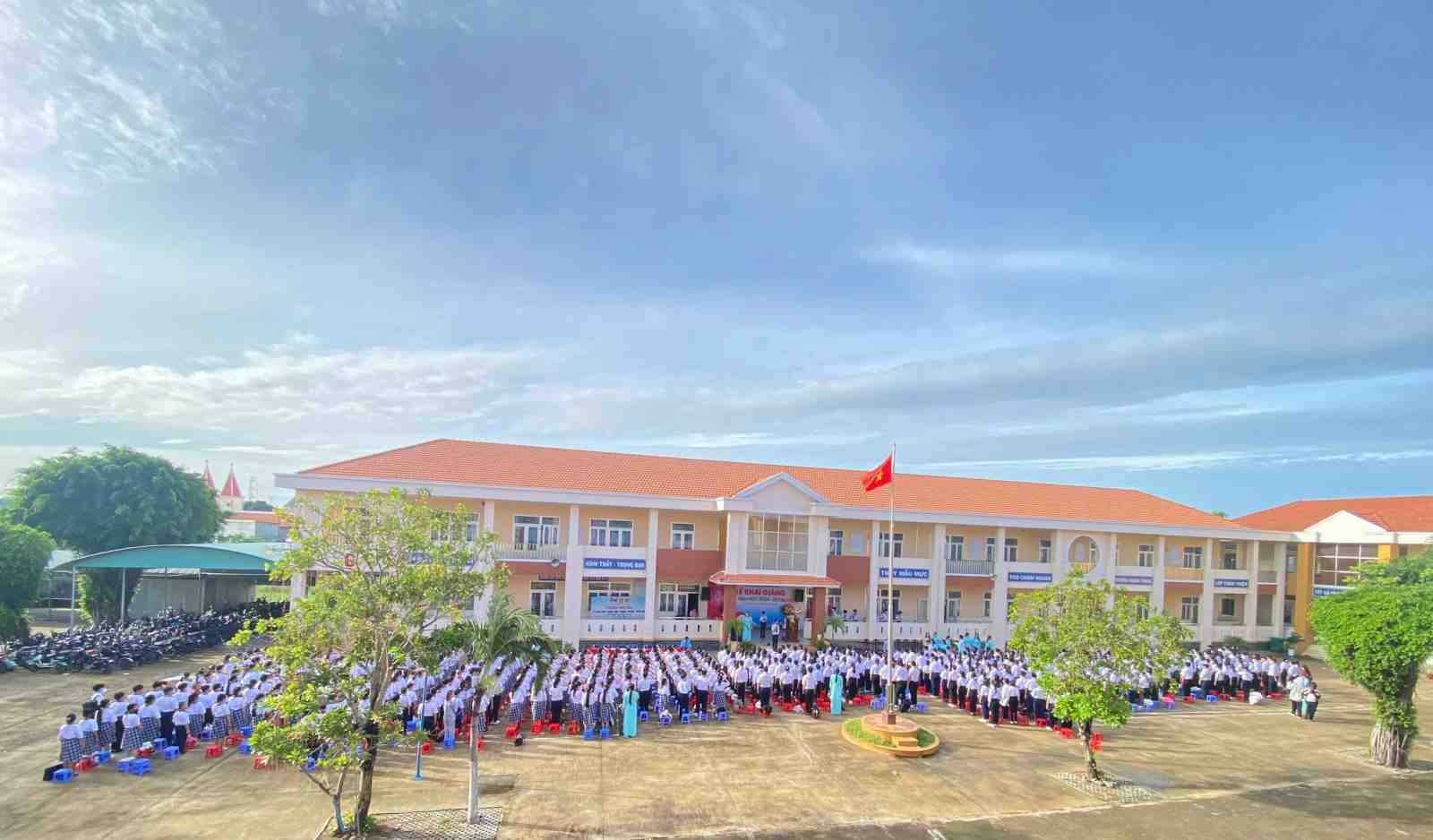 Buổi lễ có sự tham dự của đại diện chính quyền địa phương, ban giám hiệu, các thầy cô giáo, phụ huynh và toàn thể học sinh nhà trường. Chương trình bắt đầu với nghi thức chào cờ trang trọng, tiếp đó là phần đọc diễn văn khai giảng và đánh trống khai trường từ thầy Hiệu trưởng, đánh dấu một năm học mới đầy kỳ vọng.